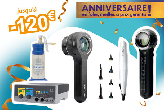 Dermatoscopes, bistouris électriques, cryothérapie… en promotion Anniversaire !