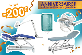Divans d'examen, table de massage, lampes d'examen... en promotion Anniversaire !