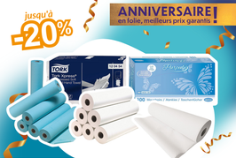 Draps d’examen, Essuie-mains, mouchoirs… en promotion Anniversaire !