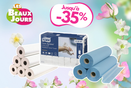 Draps d’examen, essuie-mains, essuie-tout, papier de toilette… en promotion pour les beaux jours !