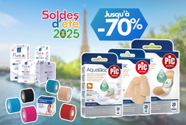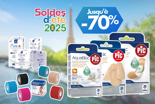 Compresses en non tissé, compresses de gaze, bandes adhésives, pansements... en promotion pour les soldes été !
