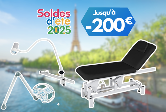 Divans d'examen, lampes d'examen, table de massage, charriots... en promotion pour les soldes été !
